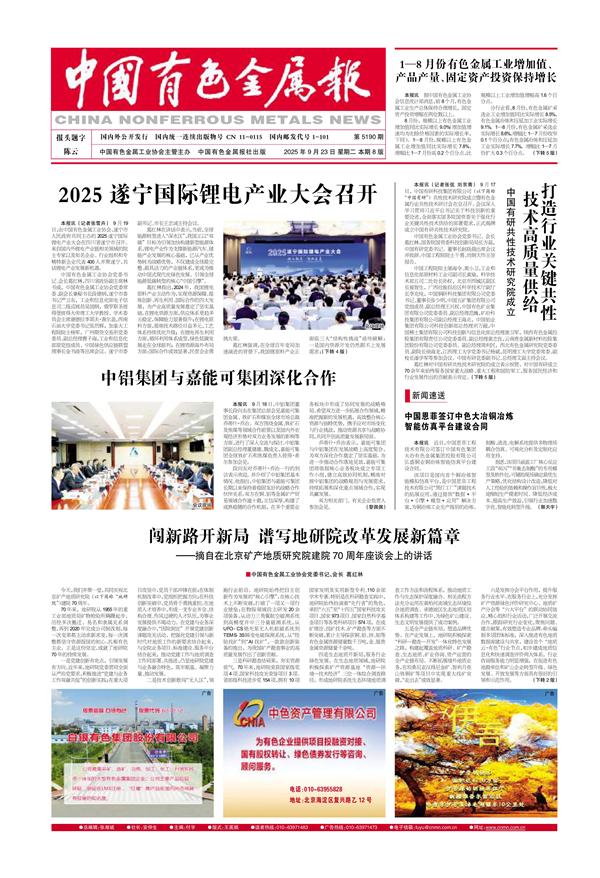 中国有色网 2025年9月23日 来源:中国有色金属报