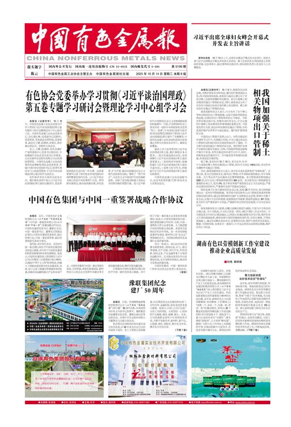 中国有色网 2025年10月14日 来源:中国有色金属报