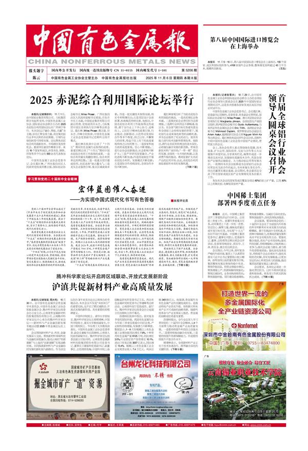 中国有色网 2025年11月6日 来源:中国有色金属报