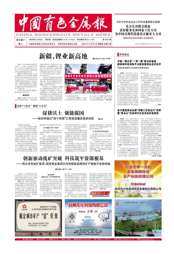 中国有色网 2025年12月25日 来源:中国有色金属报