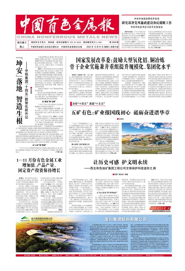 中国有色网 2025年12月27日 来源:中国有色金属报