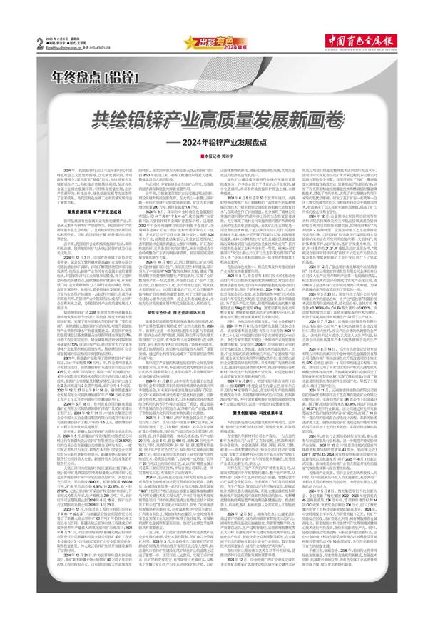 【年终盘点[铅锌]】共绘铅锌产业高质量发展新画卷 2024年铅锌产业发展...
