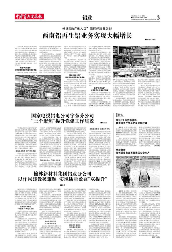 畅通消纳“出入口” 循环经济显效能 西南铝再生铝业务实现大幅增长