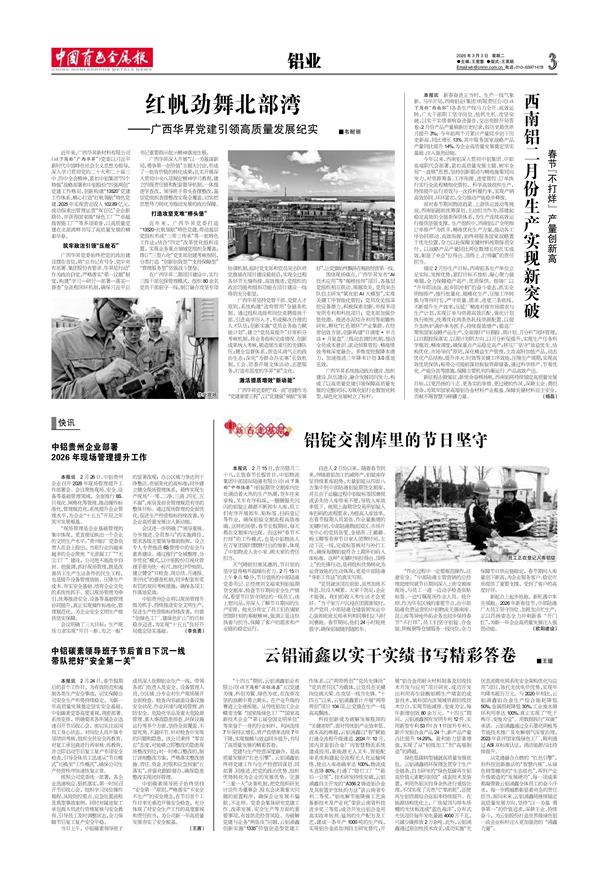 春节“不打烊” 产量创新高 西南铝二月份生产实现新突破