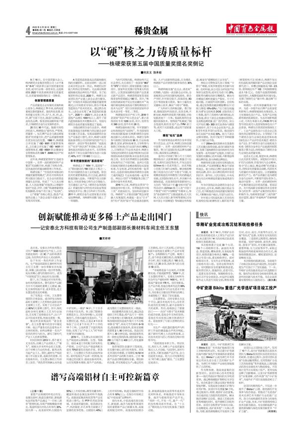 创新赋能推动更多稀土产品走出国门——记安泰北方科技有限公司生产制造部副部...